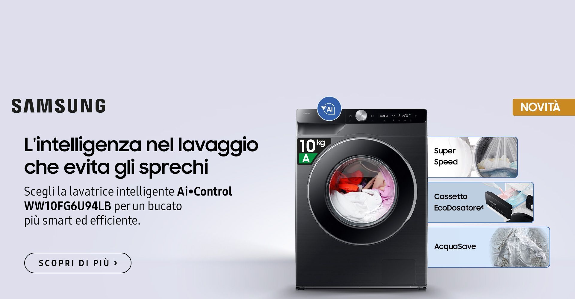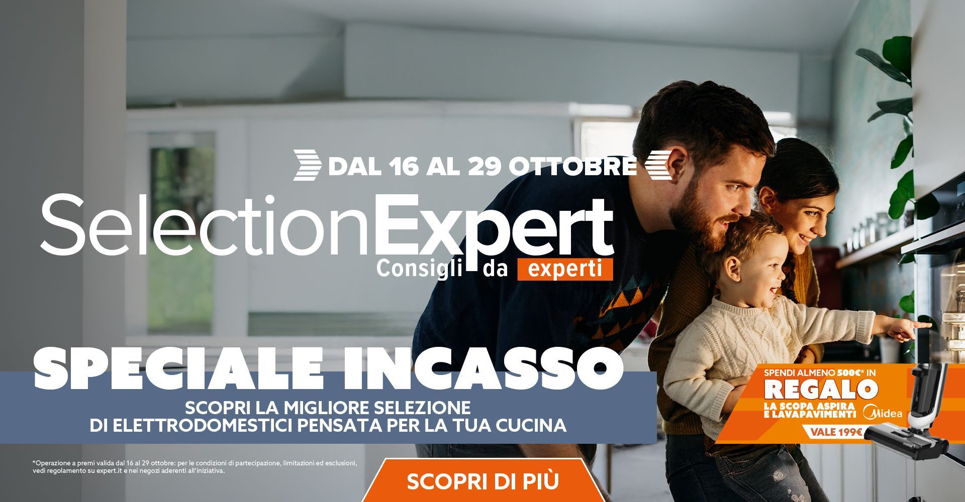 in più, vasta scelta di prodotti ad incasso come: piani cottura, forni e frigo, lavastoviglie e lavatrici, per poi passare al piccolo domestico con friggitrici ad aria e molto altro.