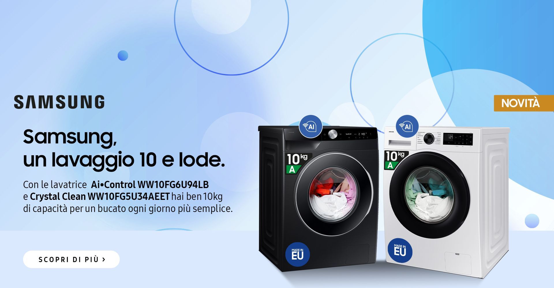 in più, vasta scelta di prodotti ad incasso come: piani cottura, forni e frigo, lavastoviglie e lavatrici, per poi passare al piccolo domestico con friggitrici ad aria e molto altro.